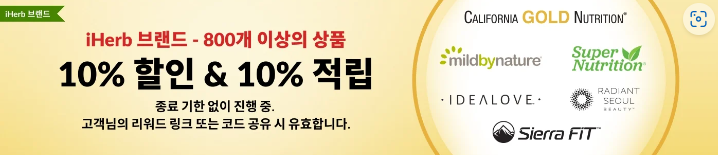 120$ 이상 구매 시 아이허브 자체 브랜드 30%, 일반 브랜드는 10% 적용되는 코드예요.