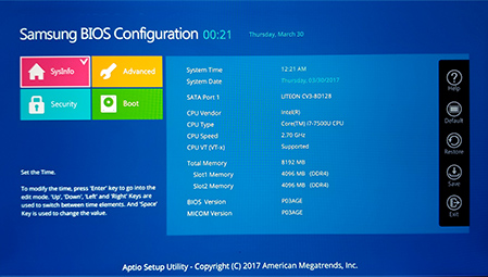 - 1. Windows 설치 파일이 저장된 USB 저장장치를 PC에 연결한 다음, PC 전원을 켜고 바로 F2키를 여러번 눌러 바이오스 진입합니다.