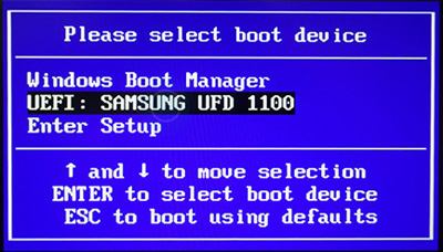 - 7. 재부팅이 되는 동시에 키보드에 F10 키를 연속 누르면 [Select Boot Device] 창이 표시됩니다.