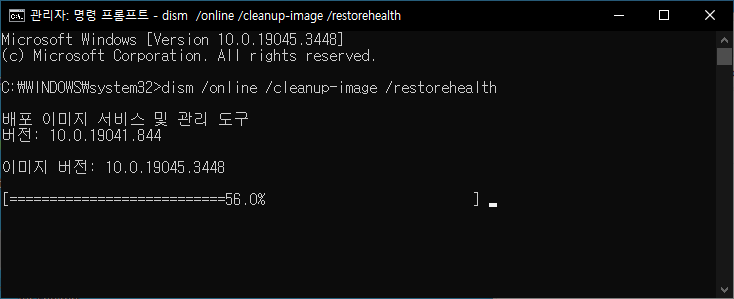 해당 명령어를 실행하면 DISM이 Windows 업데이트를 사용하여 손상을 해결하는 데 필요한 파일을 제공합니다.
