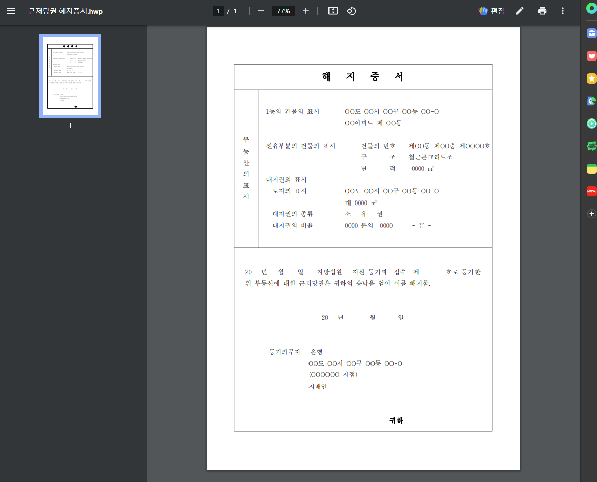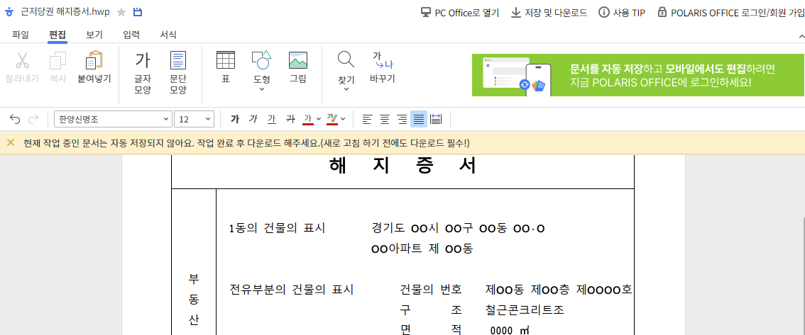 웨일브라우저로 오픈해서 상단의 편집 아이콘을 통해 폴라리스오피스로 수정도 가능합니다.