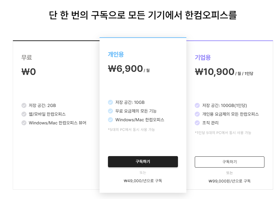 한컴 독스 구독형 제품이지만 일부 기능에 대해 무료로 제공합니다.