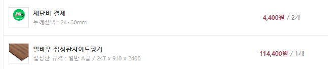 두께는 24T 로 했습니다. 18T는 너무 얇아 보일것 같아 24T와 30T 중에 고민을 했습니다. 저렴한 24T로 했습니다.